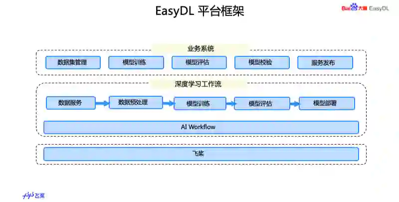 EasyDL 是百度 AI 开放平台下面的零门槛 AI 开发平台,大家应该都对 EasyDL 有了一定的了解。经过多年发展,EasyDL 已经开放了三个不同的版本,面向不同的用户群体,分别是经典版、专业版和零售版。不管是哪个版本,EasyDL 定制模型服务都是分三个阶段,首先是对原始数据进行处理,然后再进行模型的训练和评估,最后是把某些服务进行部署在生产环境中进行集成。