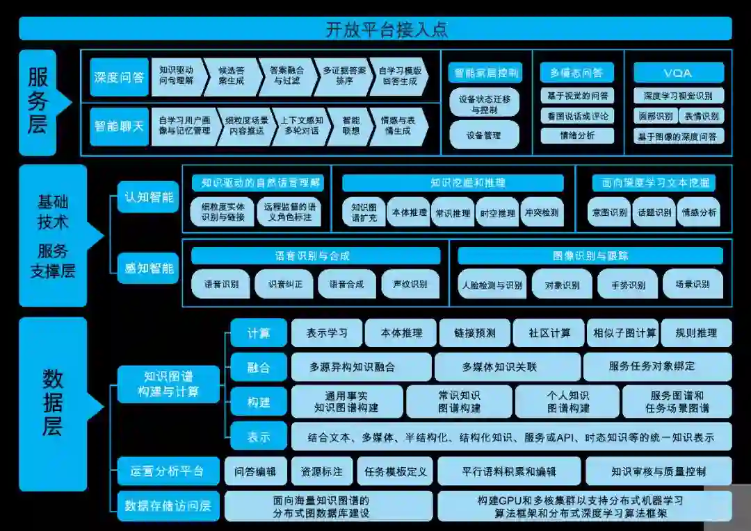上图是Gowild提出的人工智能生命引擎(GAVE),把语义理解、QA系统、智能对话等等技术组件架构在了知识图谱之上,而知识图谱则是给予AI“生命感”的重要工具。