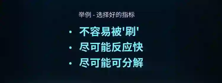 2,指标反应要快。指标反应的速度其实就是你产品的迭代速度,比如说你关注的是年用户满意度跟月用户满意度,反应在你产品上的结果就是不一样。