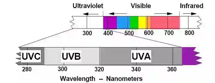 UVA1:340-400nm;UVA2:320-340nm;UVB:290-320nm丨Gibson, 2008