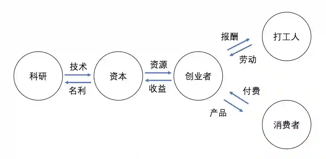 我们从中可以总结出商业的良性循环:科学研究催生科技->科技在资本帮助下催生新的行业和产品->新的产品提高消费者的生活水平->而消费者的付费让资本盈利和反哺科研。