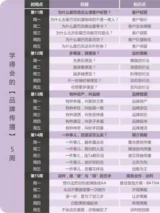 《用得上的商学课》课程中,路骋团队把清华-MIT商学知识体系打碎,结合过往牛逼的业绩案例,重构成4个模块,100个知识点,7分钟讲明白1个商学知识点,附带3个实战方法。