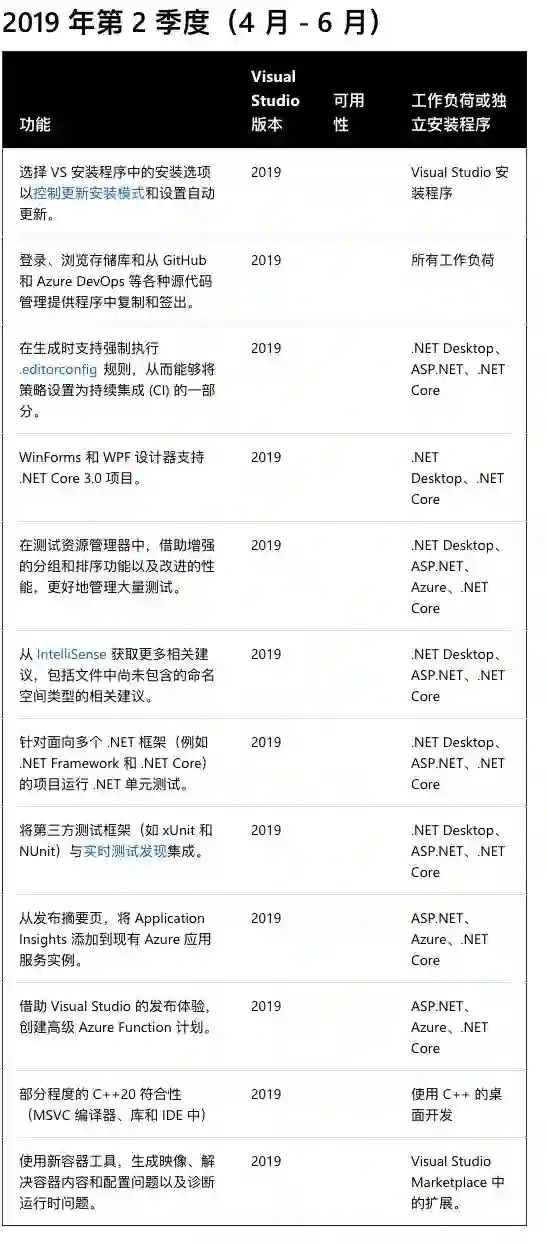 最近微软在官网更新发布了 Visual Studio 2019 年第 2 季度的路线图。