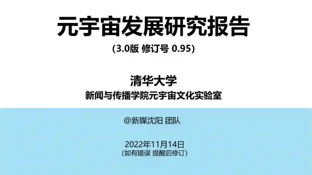 了清华大学沈阳教授团队最新发布的元宇宙发展研究报告3.0。