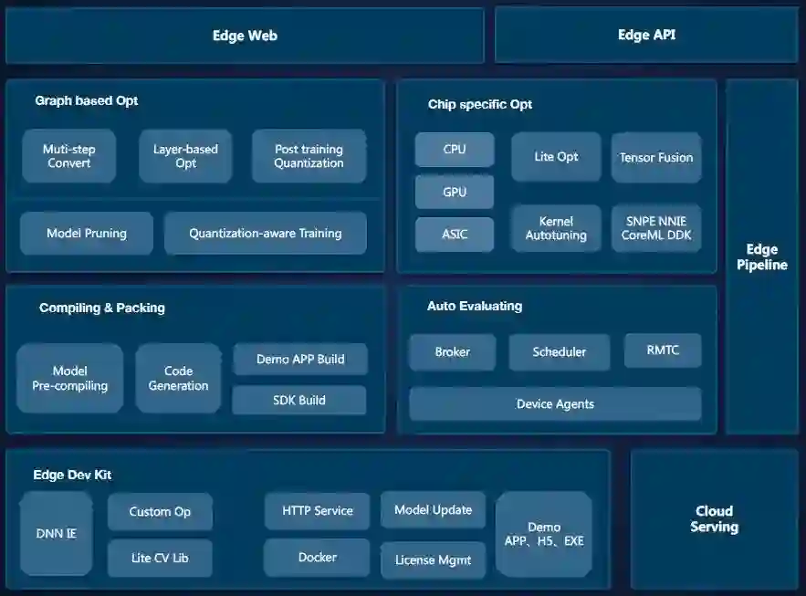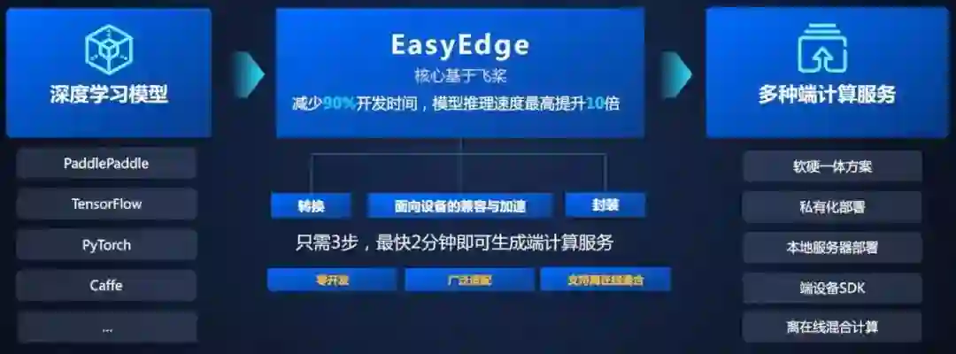 第二步:通过EasyEdge做转换→面向设备的兼容与加速→封装;EasyEdge自动完成端计算服务产物;