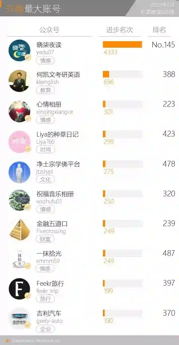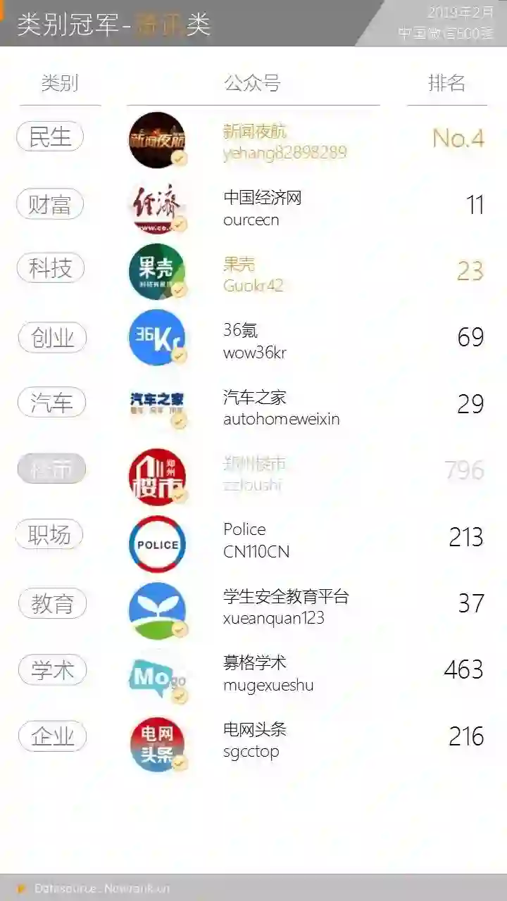 请认准由新榜(newrank.cn)认证出品的中国微信500强月榜、年榜。