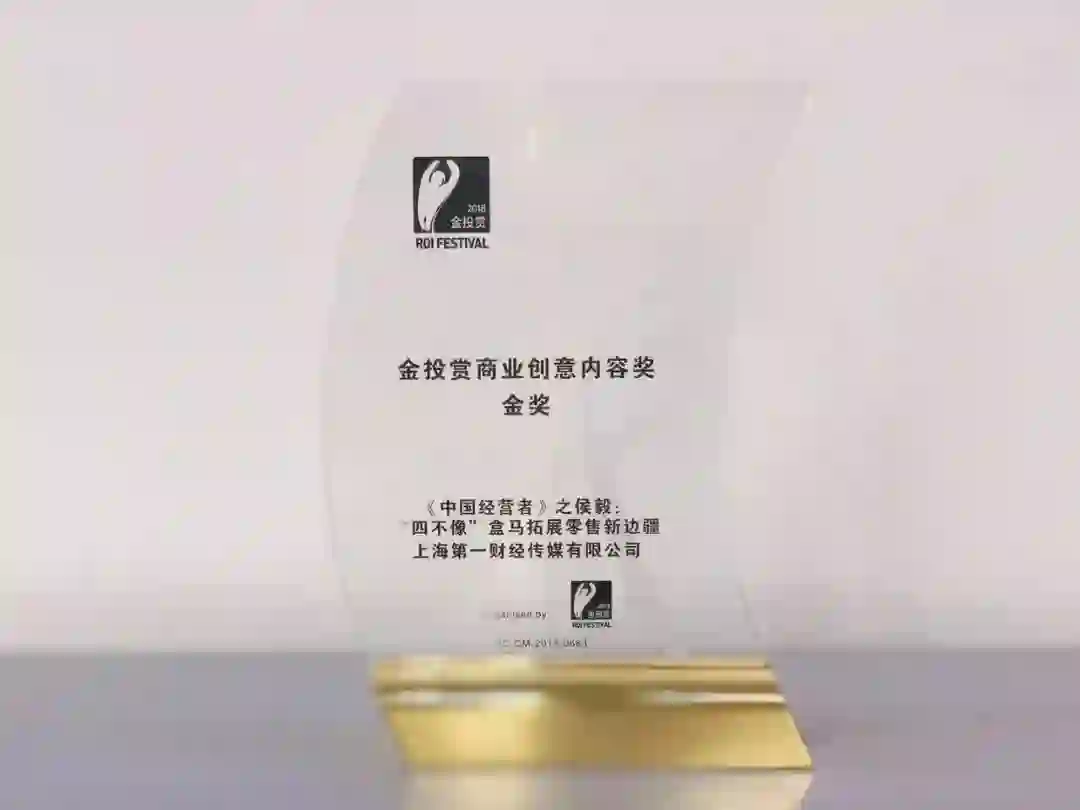 2018年10月16日,第三届金投赏商业创意内容奖在上海颁发,第一财经《中国经营者》之《侯毅:“四不像”盒马拓展零售新边疆》节目在大赛中斩获金奖。