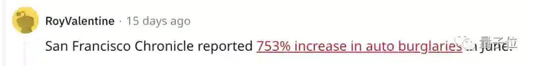 有人回复给他一则6月份的报道,在小马哥生活的旧金山,砸车案件数量增长了753%。
