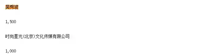 吴秀波还出资40万元,持有上海喜天影视文化有限公司(以下简称“喜天影视”)2%股权。