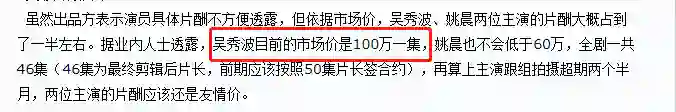 早在4年前,据《徐州日报》报道,吴秀波电视剧单集片酬的市场价已经到了100万……