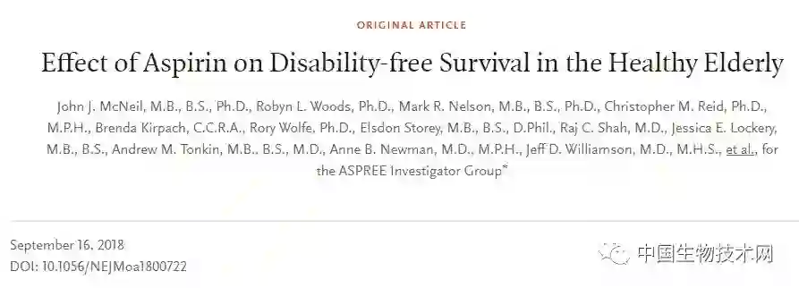 领导该试验的澳大利亚墨尔本莫纳什大学的John McNeil说:“尽管阿司匹林已经问世超过100年,但是我们还不清楚健康老年人是否应该服用这种药物来作为预防措施以使延长寿命。全世界目前有数百万的健康老人每天都在服用低剂量的阿司匹林,也许这么做是没有必要的,因为我们的研究显示,服用阿司匹林并没有全面的益处以抵消出血的风险。”该试验细节近日已发表在《New England Journal of Medicine》上。
