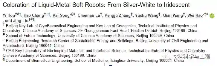 柔性机器人是一个新兴领域,从机械学、物理学到生物学,都已获得越来越广泛的关注。然而具有刚性对应物的传统材料很难实现灵活地转变为多种形态。近日,中国科学院理化技术研究所研究报道了液态金属表面在牺牲金属或电场的刺激下可产生变色现象,使得液态金属具备了类似章鱼等头足纲动物的柔软、可变形变色的特点。该研究由理化所研究员饶伟和宋恺合作,成果发表于ACS Applied Materials & Interfaces 。论文第一作者为中国科学院大学未来技术学院液态金属教研室直博研究生后仪和北京建筑大学联合培养研究生常皓。