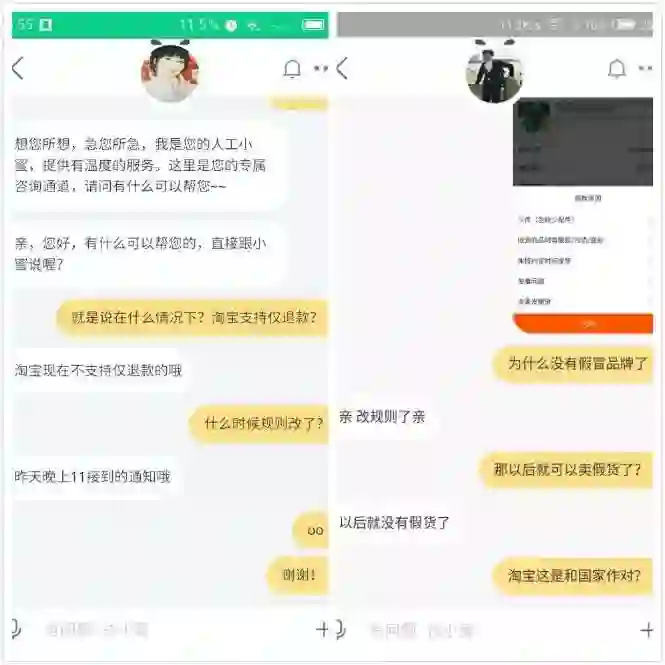 14 日凌晨时分,一条消息让群里炸锅了:淘宝退款中关掉了「假冒品牌」这一选项。