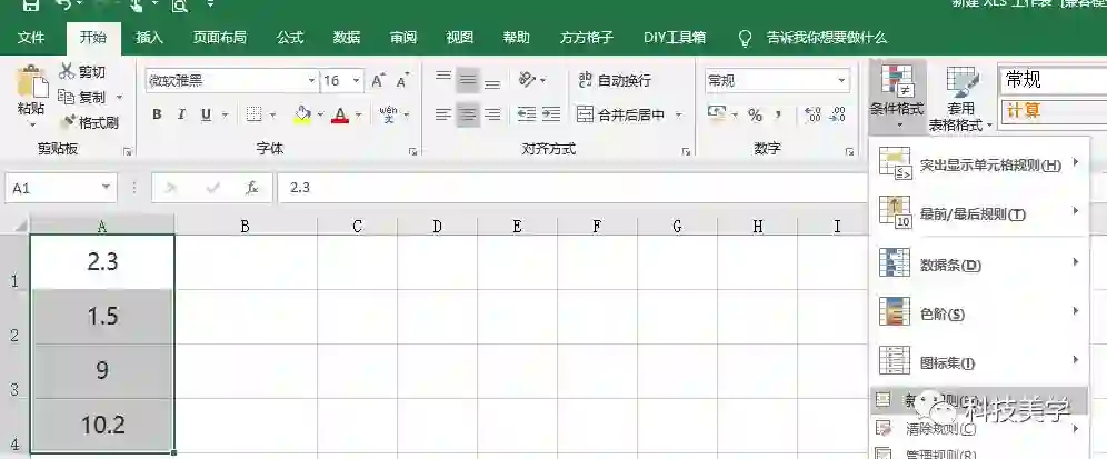 (1)打开工作表,选中需要的单元格,在“开始”菜单选项卡中,点击样式功能区的“条件格式”命令选项,在弹出的选项框中点击“新建规则”;
