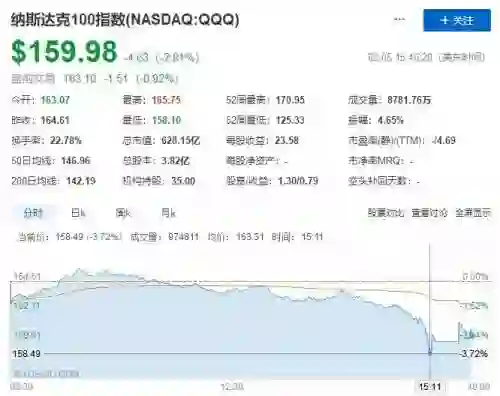 纳斯达克跌幅最多接近4%!