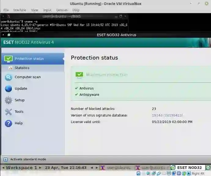 在第一个测试场景中,我们将在Ubuntu 18.04(x86_64)上使用Eset NOD32 4.0.90: