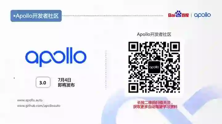 更多学习资料和自动驾驶相关技术内容,大家可以关注 Apollo 开发者社区的公众号来获取,欢迎大家在这里沟通交流!