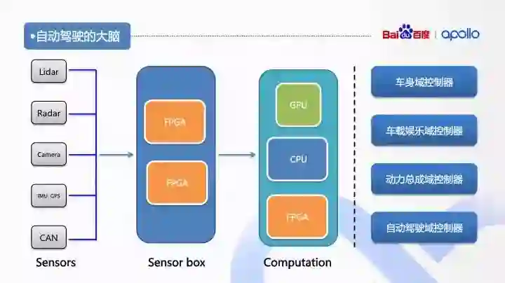 计算单元部分:各类传感器采集的数据统一到计算单元处理,为了保证自动驾驶的实时性要求,软件响应最大延迟必须在可接受的范围内,这对计算的要求非常高。目前主流的解决方案有基于 GPU、FPGA、ASIC 等。