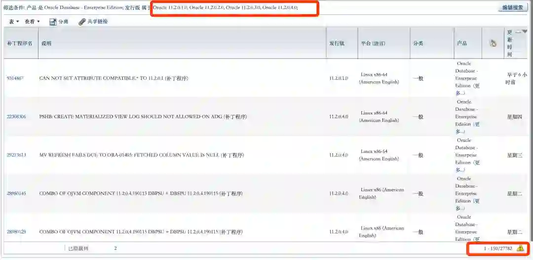 当然,这补丁数量还是远远低于Oracle11.2系列的27782个: