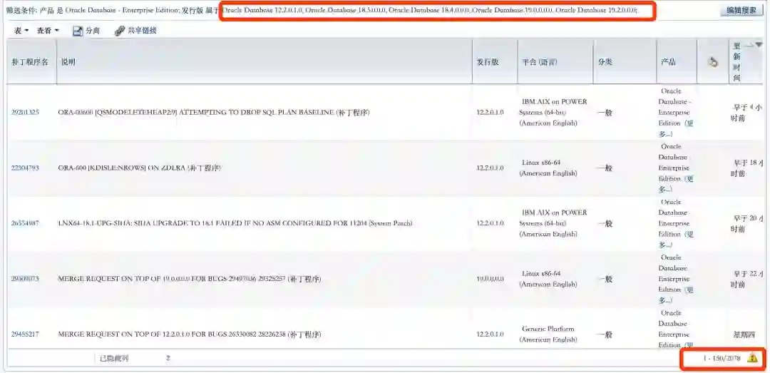 到目前为止,Oracle 12.2系列的fix patch数量是2078个: