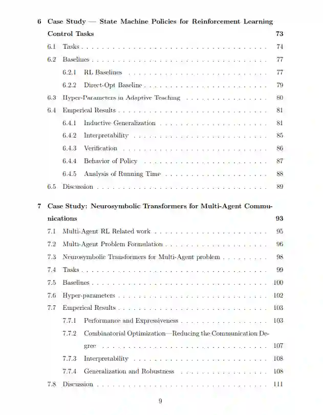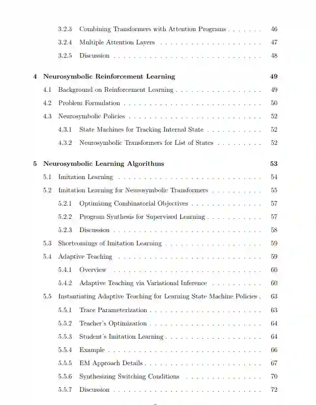 这篇论文表明,通过神经符号模型的视角来看待智能系统比传统的深度学习方法有几个好处。神经符号模型包含符号程序性构造,如循环、条件和连续的神经成分。符号部分使模型具有可解释性、泛化性和稳健性,而神经部分处理智能系统的复杂性。具体而言,本文提出了两类神经符号模型——状态机和神经符号transformers,并以基于强化学习的自主系统和多机器人系统为例对它们进行了评估。这些案例研究表明,学习的神经符号模型是人类可读的,可以外推到看不见的场景,并可以处理规范中的稳健目标。为了有效地学习这些神经符号模型,我们引入了利用机器学习和程序合成的最新技术的神经符号学习算法。