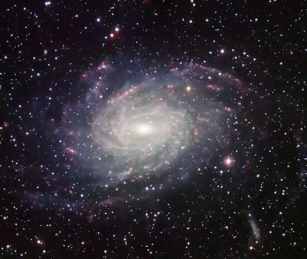 有的星系和我们的银河系很像,呈现相对扁平的盘子一样的形状,还有旋转的手臂从中心向外延伸,整个星系如果从侧面看是一个细长条。有的星系更像一个胖乎乎的椭球,从哪个方向看都是圆滚滚的。有的星系颜色发蓝,有的明显是橙红色。