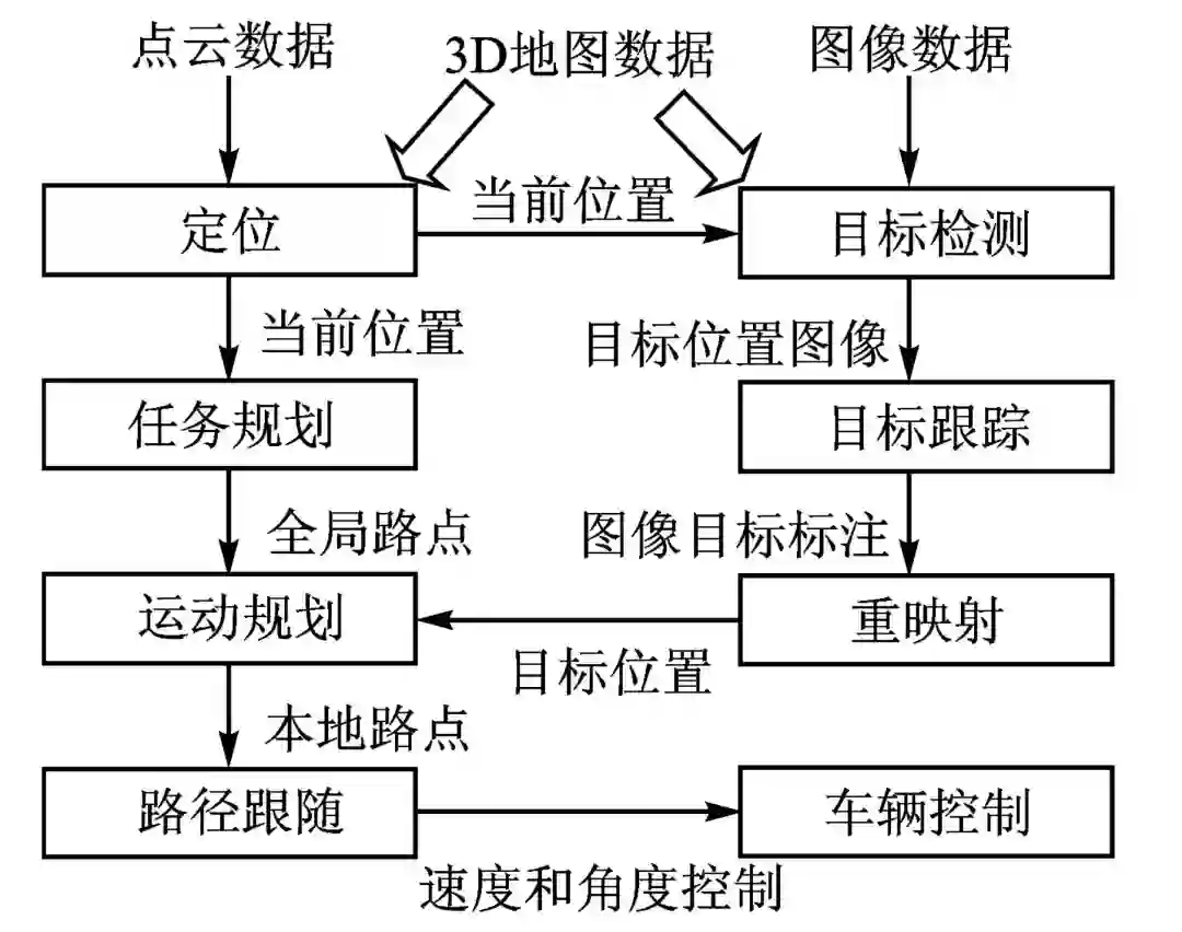 图 5 无人驾驶车辆算法基本控制和数据流