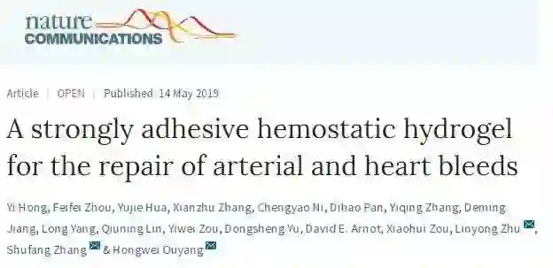 神奇“胶水”目前已在猪等大型动物上证实了有效性。“ 欧阳当时给我看过一段实验视频,让我眼前一亮。”陈会文说。5月14日,相关论文 A strongly adhesive hemostatic hydrogel for the repair of arterial and heart bleeds在《自然通讯》杂志发表。第一作者为浙大基础医学院博士后洪逸。