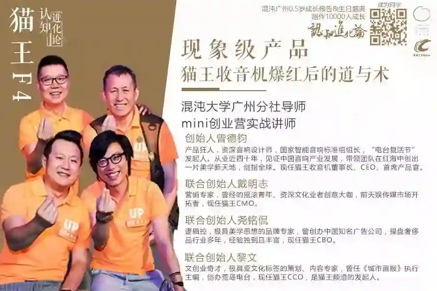 在8月19号混沌广州分社的半周年庆,猫王F4团队现场分享了“猫王的成功之道”,这是根据F4团队的分享整理所得,加入了广分笔记侠团队的思考。