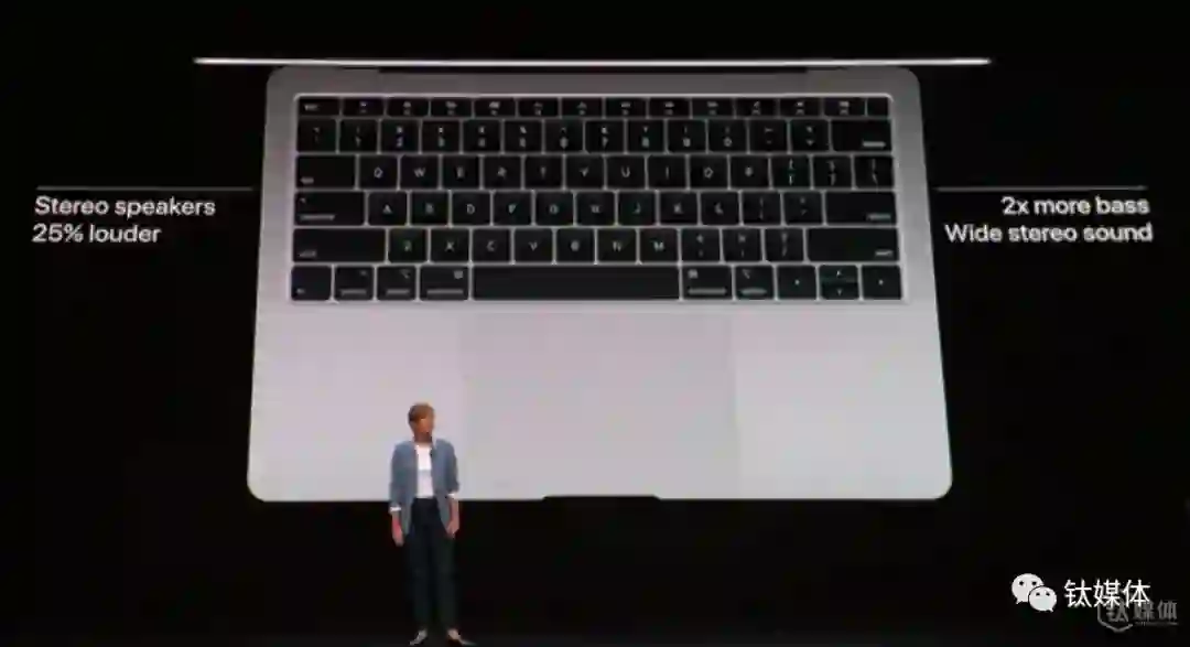 边框收窄了 50%,色域拓宽了 48%,分辨率提高了 4 倍,TrackPad 增宽了 20%,支持 Force Touch,扬声器响度增加了 25%。
