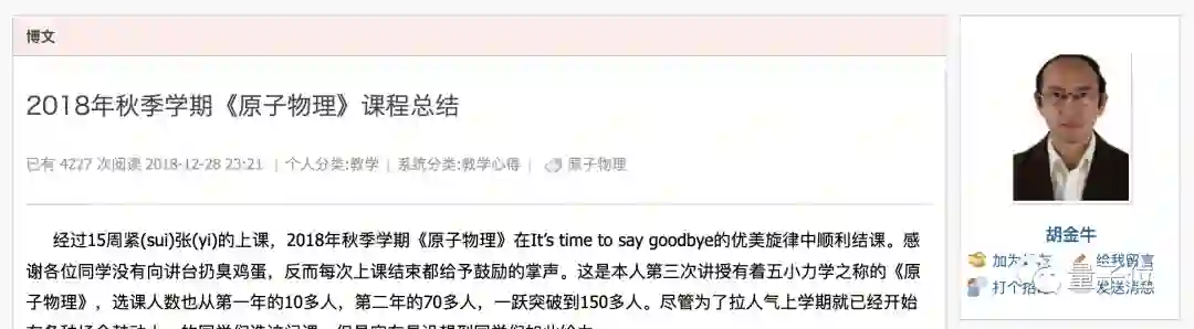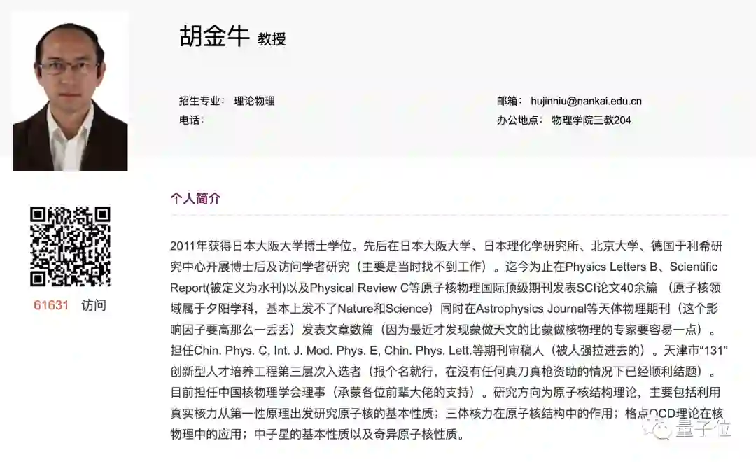 事情的起因,源自南开大学物理学院的胡金牛教授。