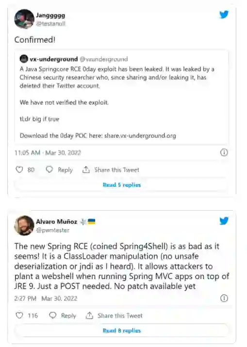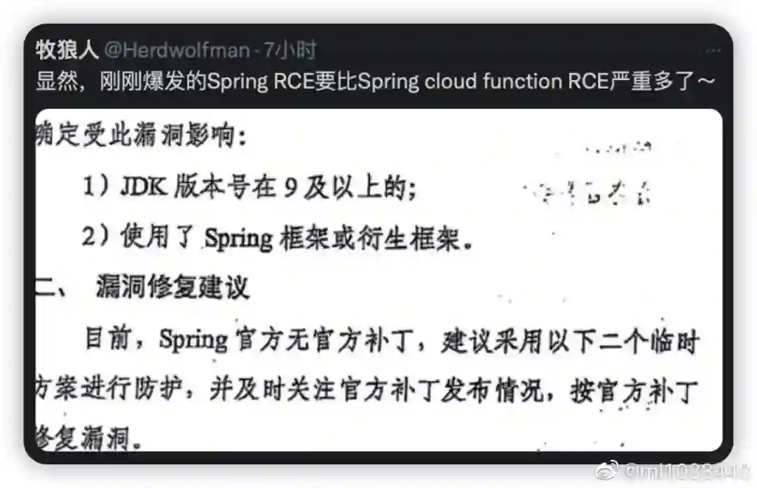 相比前者,3 月 29 日晚间,有不少网友爆料的 Spring RCE 漏洞,让开发者圈中人心惶惶。