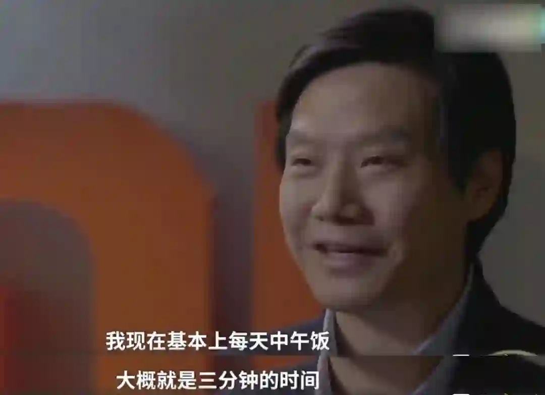 小米高级副总裁祁燕也曾透露,雷军每天直到晚上一两点才下班,中午饭是三四点,晚饭是十一二点。当年雷军做客某节目时也曾表示自己三分钟吃一顿饭,一天开十一个会。