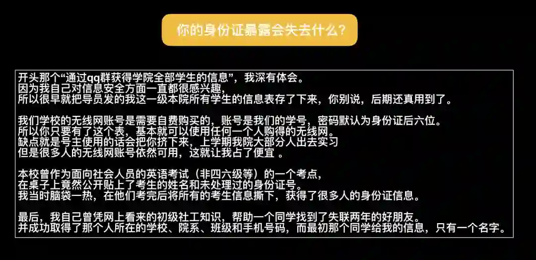 在学校里知道你身份证号有什么用?来看下一位读者和我说的话。