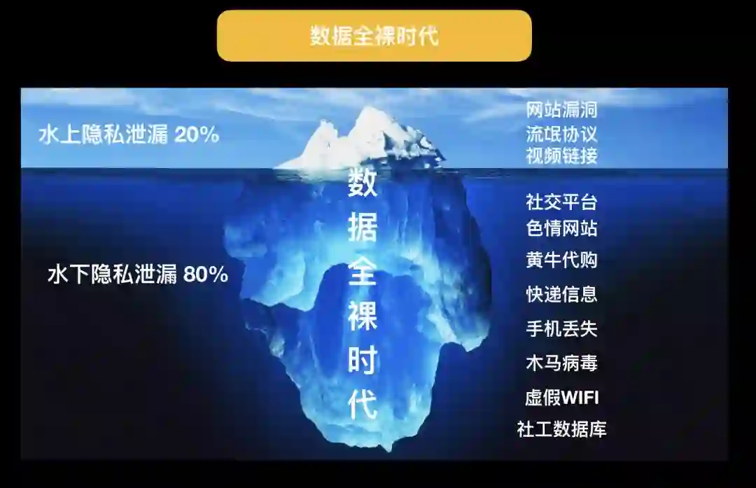 生活中还有非常多能拿到你隐私的方法,而今天给大家展示的隐私泄漏的案例,只是数据全裸时代的冰山一角,冰山之下还有很多你不知道的世界。
