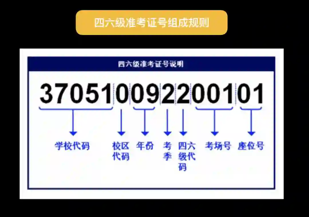 英语四六级准考证号一共由 15 位组成,知道了组成的规则,我们就拥有了上帝之眼,就可以知道任意一位学生的准考证号。