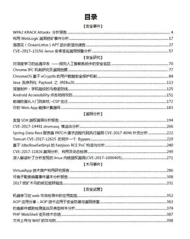 安全客2017季刊-第4期收录了数十篇优秀技术文章,涵盖第四季度最为重要的四个安全事件以及安全研究、漏洞分析、木马事件、安全运营等季度热点方向,你,不容错过!