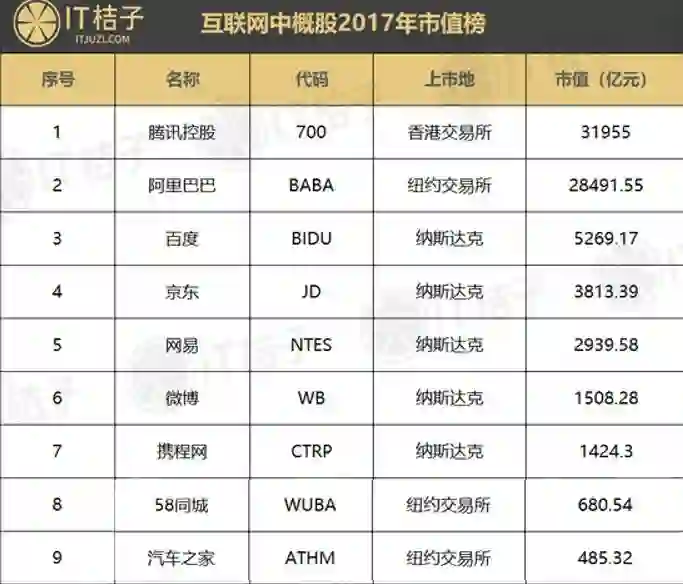 在最近中概股的相关新闻中,一份IT桔子的《2017互联网中概股市值百亿榜》又燃起了业内的八卦之魂。
