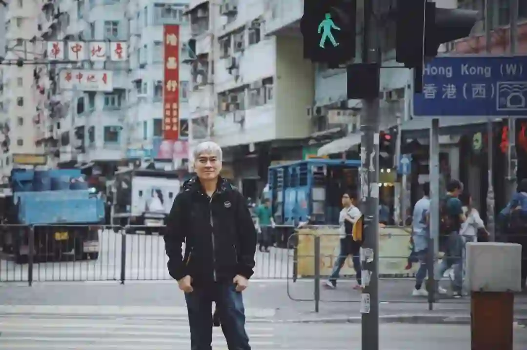 就像是已经将旅游景点走过无数遍的导游,林建强对这样的地方轻车熟路,甚至能在街道的某一处找到最好的观察角度。他走路的步子很快,语速也一样,说话带着些混迹街头的痞气,让人觉得那一头白发是故意染上去的,像电影里的黑道人物。