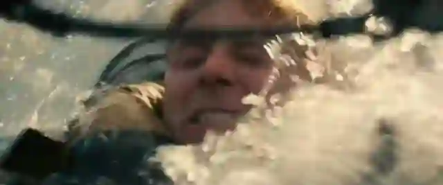 这个时候的飞行员正在跟打不开的舱盖搏斗,飞机马上要沉下去了。船长的儿子砸开了舱盖,飞行员得救。