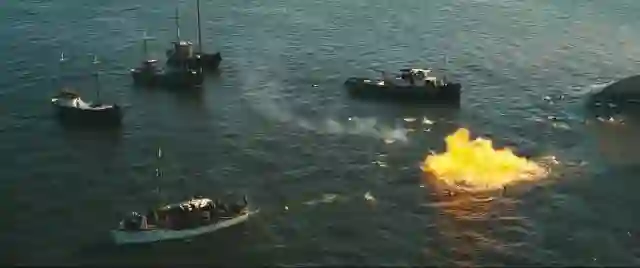指挥撤退的陆军上校曾经质疑海军每次只派一条船的决定,这时海军将军的背后,海平线上出现了万船齐发。