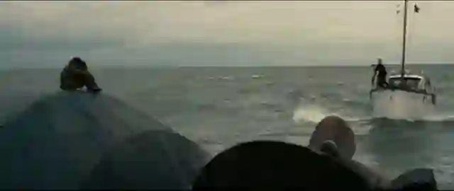 躲开这次攻击之后,得救的飞行员敬佩地看着老船长: