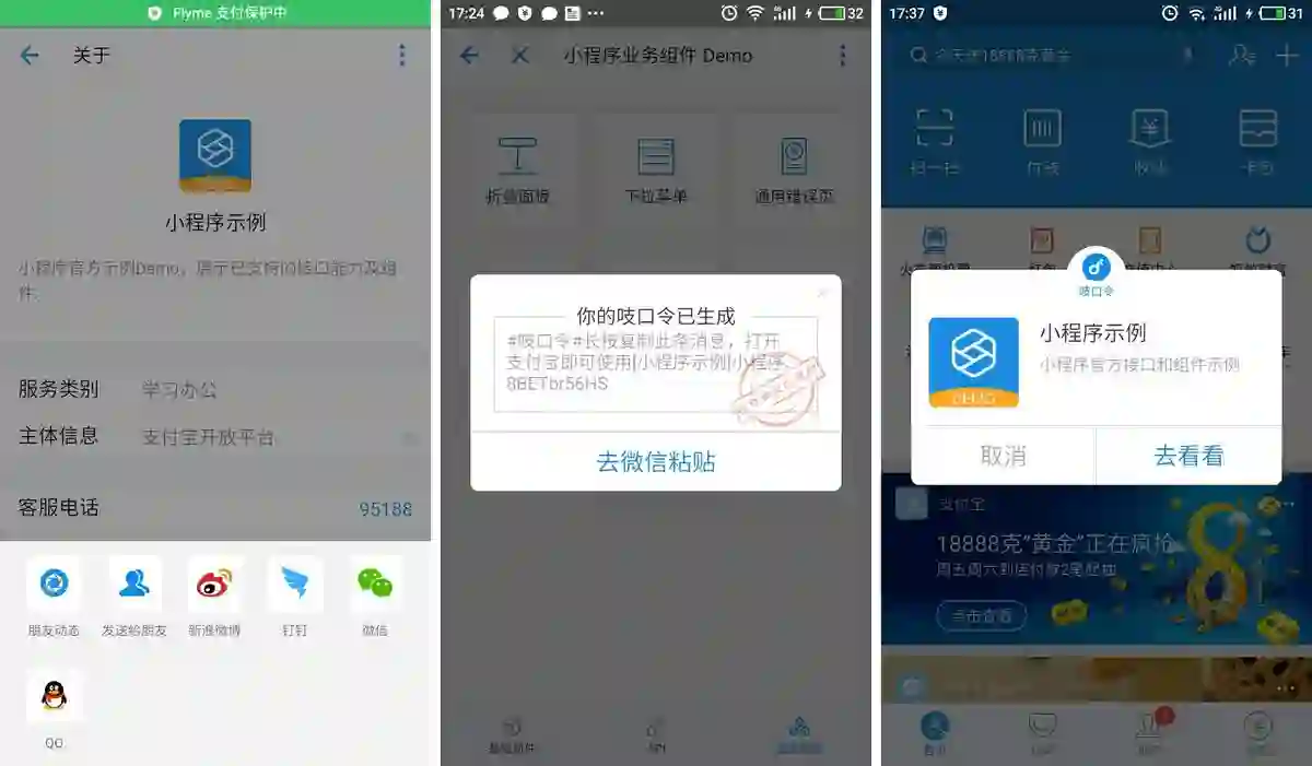 微信小程序开放半年后,支付宝小程序开始公测了。