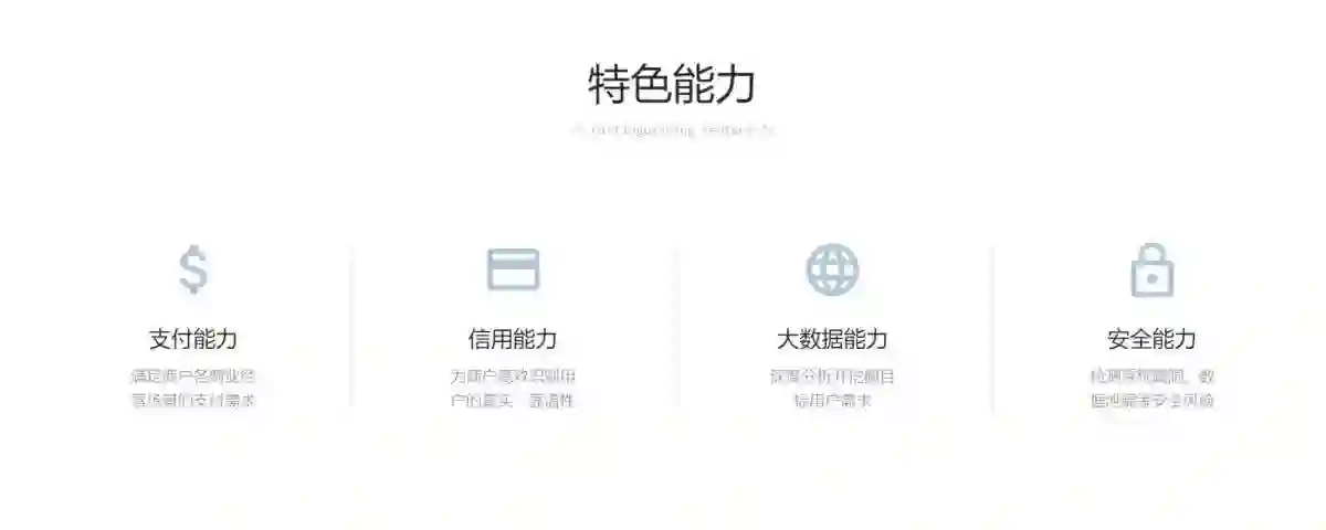 根据蚂蚁金服开放平台网站介绍,支付宝小程序有四种特色,分别是支付、信用、大数据和安全。