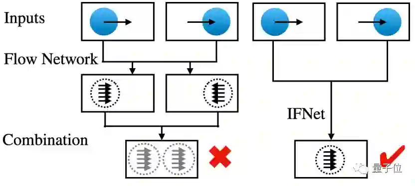 相比于利用前一帧和后一帧进行两次估计,这里的IFNET (a Specialized and Efficient Intermediate Flow Network)算法,将直接采用线性运动假设,对中间帧进行一次估计。