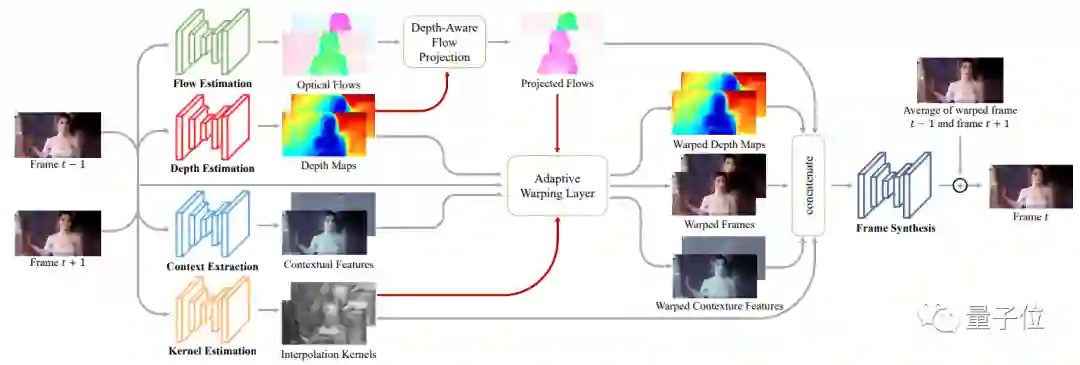 以DAIN的算法为例,如果要预测t时刻的帧,就需要t时刻的前后两帧视频,通过光流预测算法来实现。
