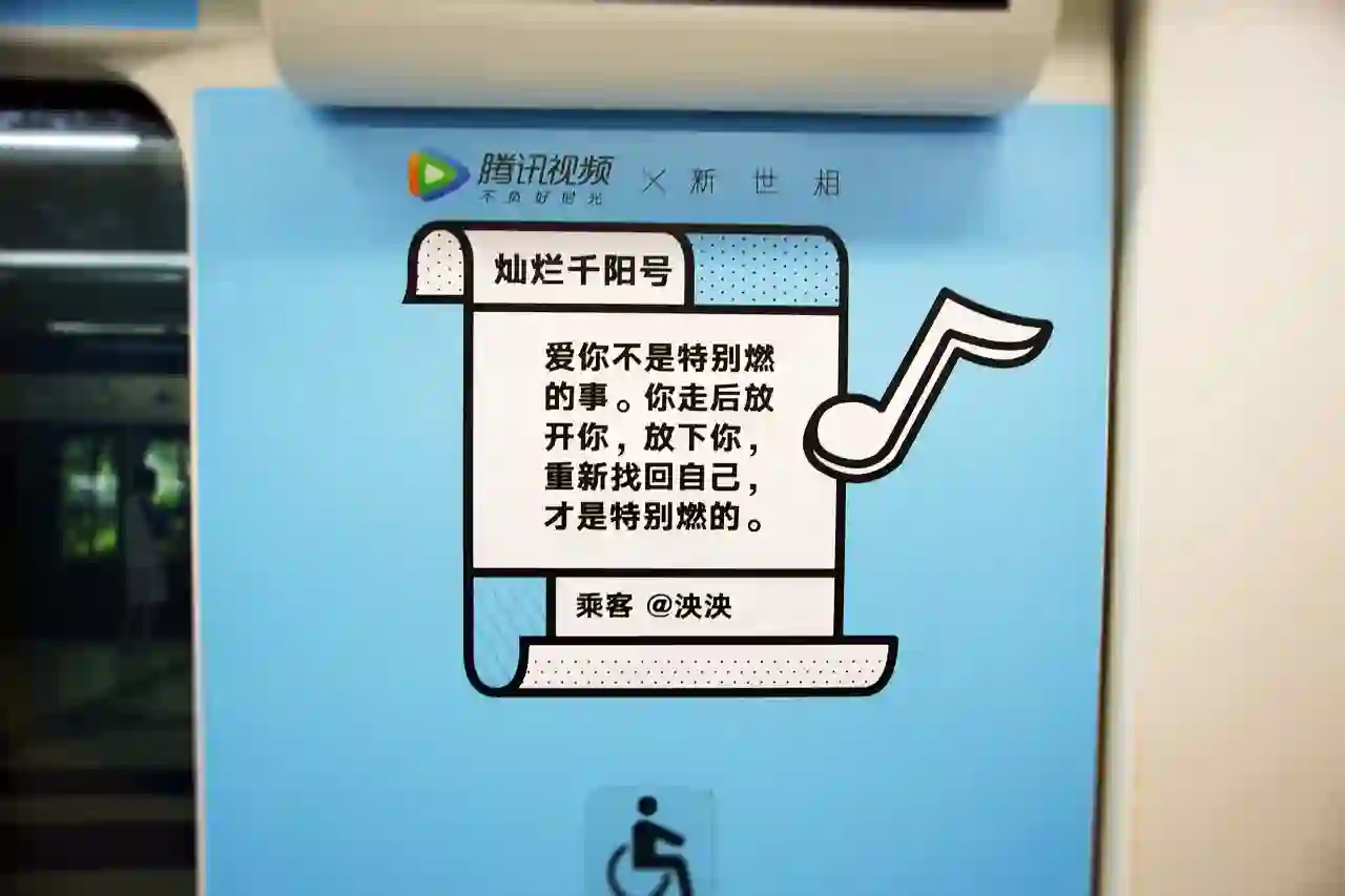 新的挑战者,是腾讯视频,它「买断」了北京地铁十号线的一趟列车,将之作为承载用户讲述故事的「好时光专列」,并点出一个「燃」字。