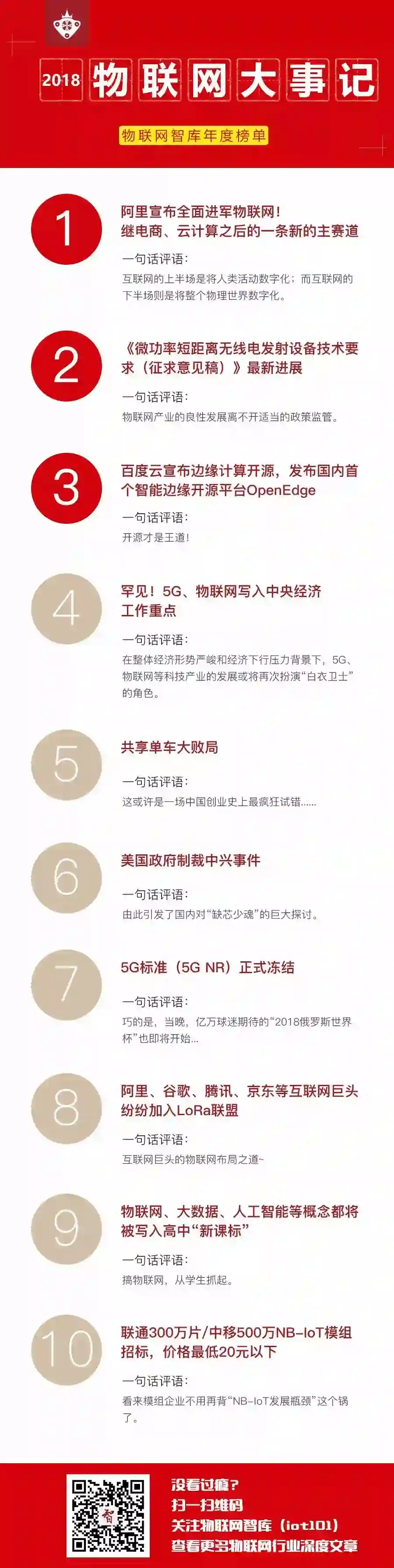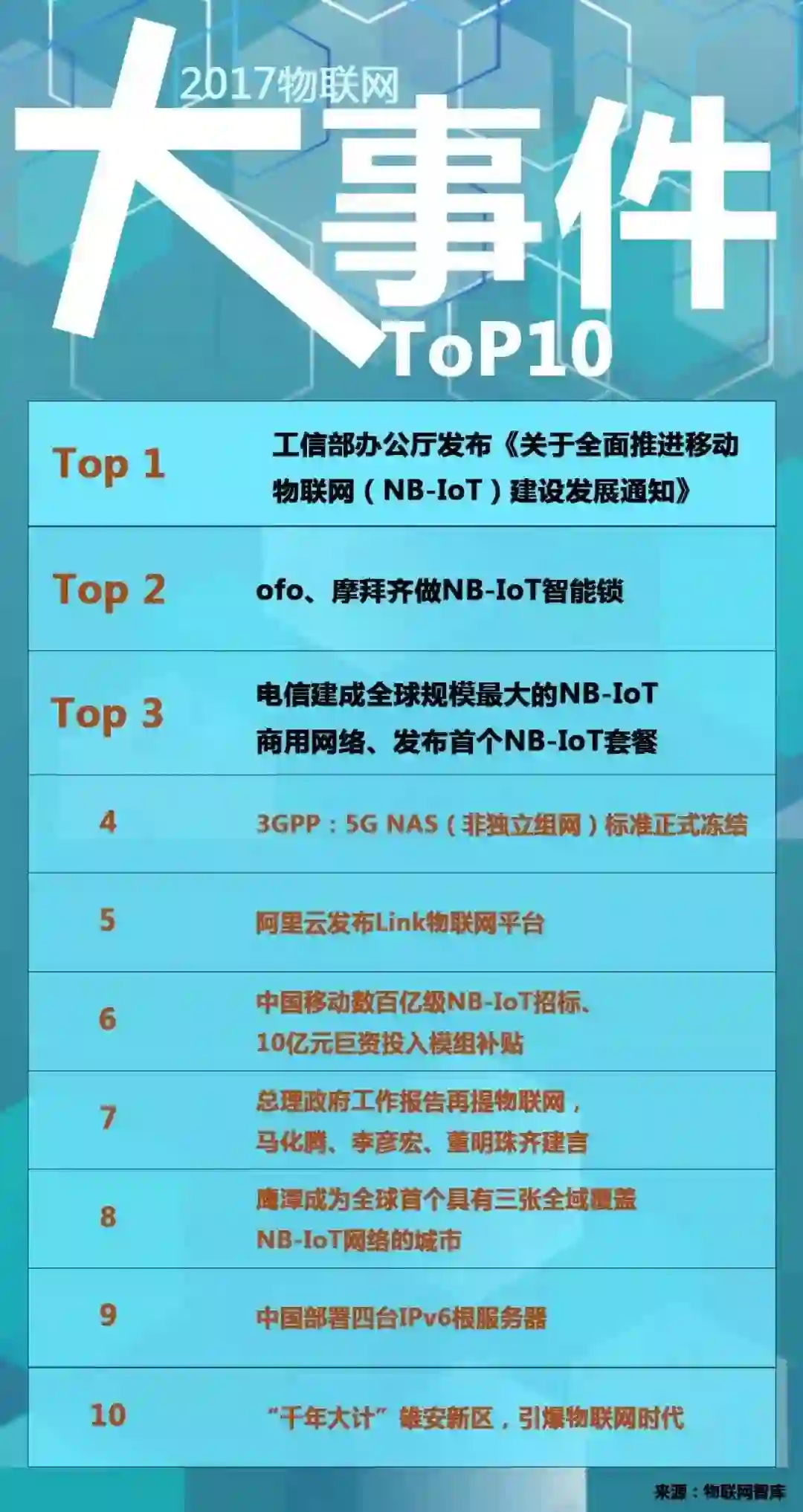 最后,附上“2017年物联网大事记 TOP10 榜单”