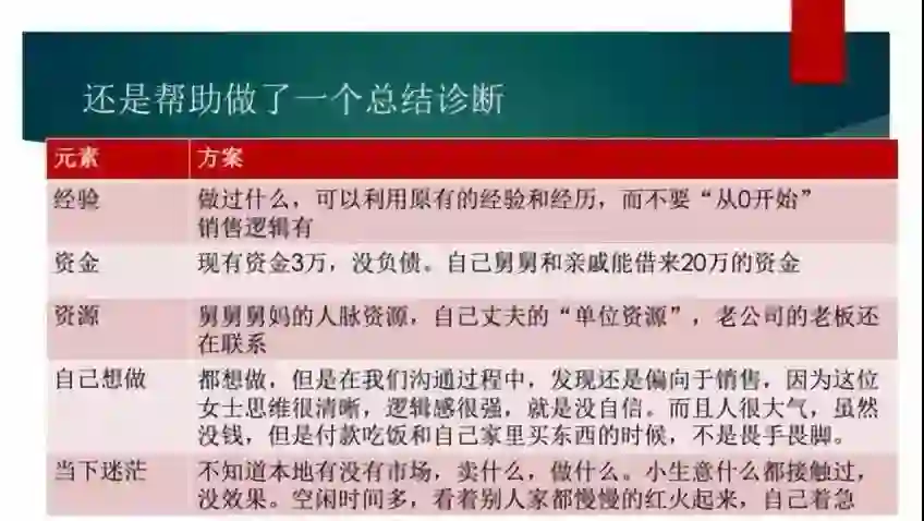 通过一对一诊断性题目,让他们认识自己,找到定位,真正开始做生意挣钱。
